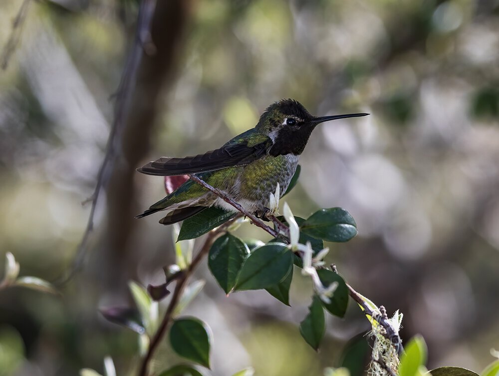 Anna’s Hummingbirds are a blur of motion as they hover before flowers looking for nectar and insects. Listen for the male's scratchy metallic song and look for him perched above head level in trees and shrubs.