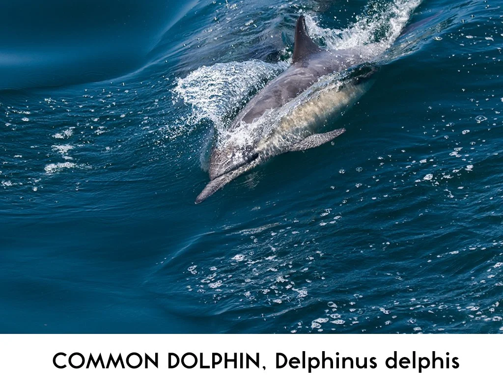 Common dolphins are colorful, with a complex crisscross or hourglass color pattern on the side; the long-beaked common dolphin being more muted in color. The common dolphin is found in all tropical and warm-temperate waters