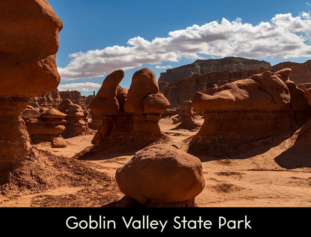Click Here Goblin Valley State Park is a showcase of geologic history. Exposed cliffs reveal parallel layers of rock bared by erosion. The softer material is removed by wind and water, leaving thousands of unique, geologic goblins.